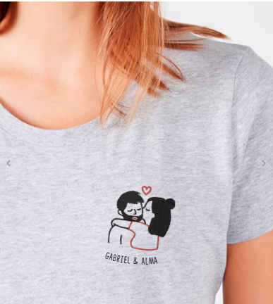 A propos de l’article: T-Shirt femme Couple baiser brodé personnalisé